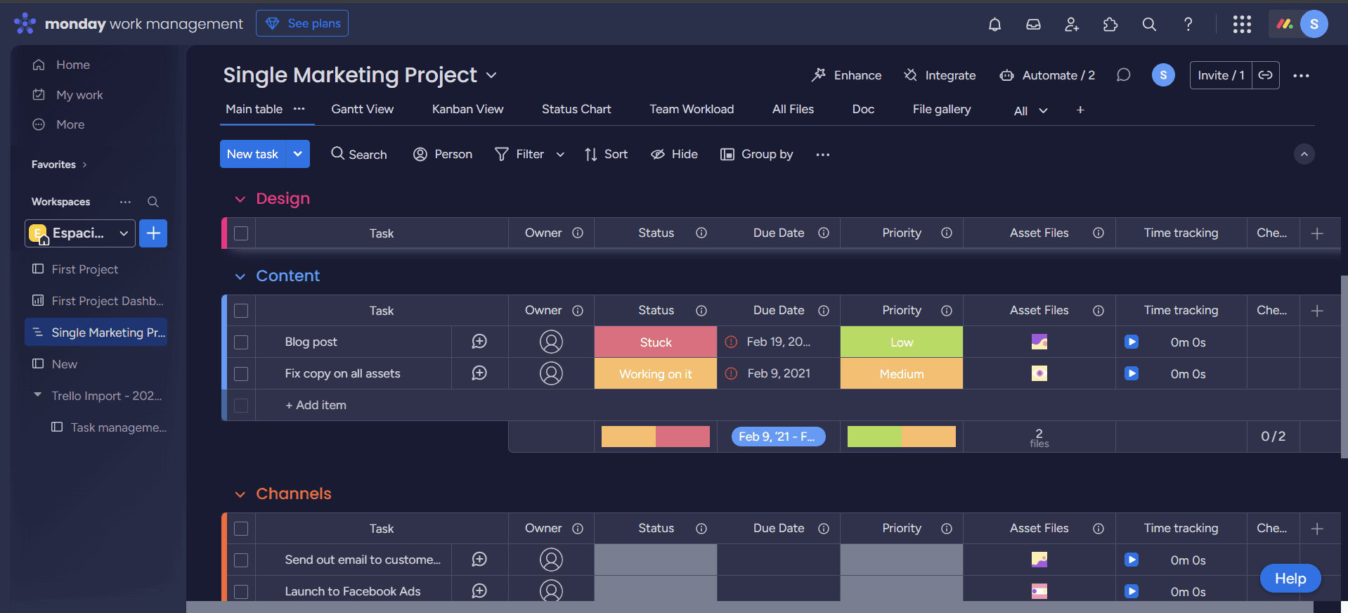 Trello stands out for its visual and intuitive interface. It’s ideal for those who want an uncomplicated tool to keep track of daily tasks. While advanced reporting requires power-ups or manual work, Trello’s simplicity is functional enough to provide a clear overview of any marketing strategy.