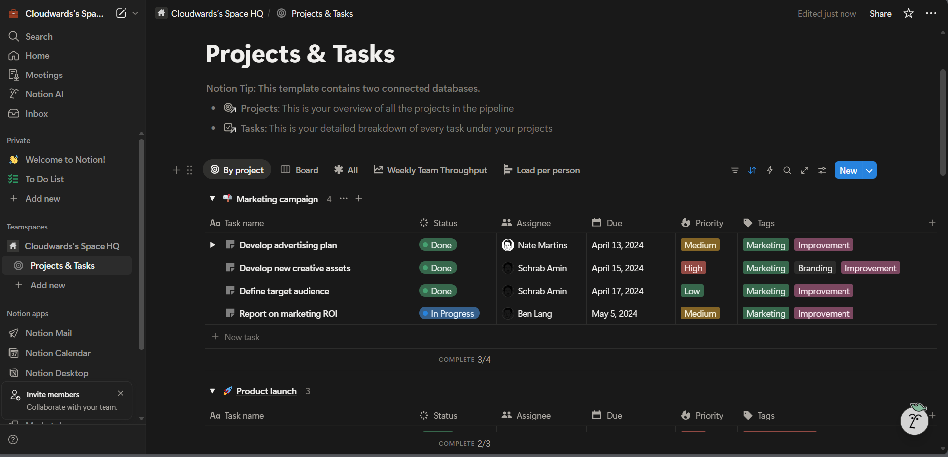 Notion combines notes and tasks in one space where teams can edit together, leave comments and keep ideas organized.