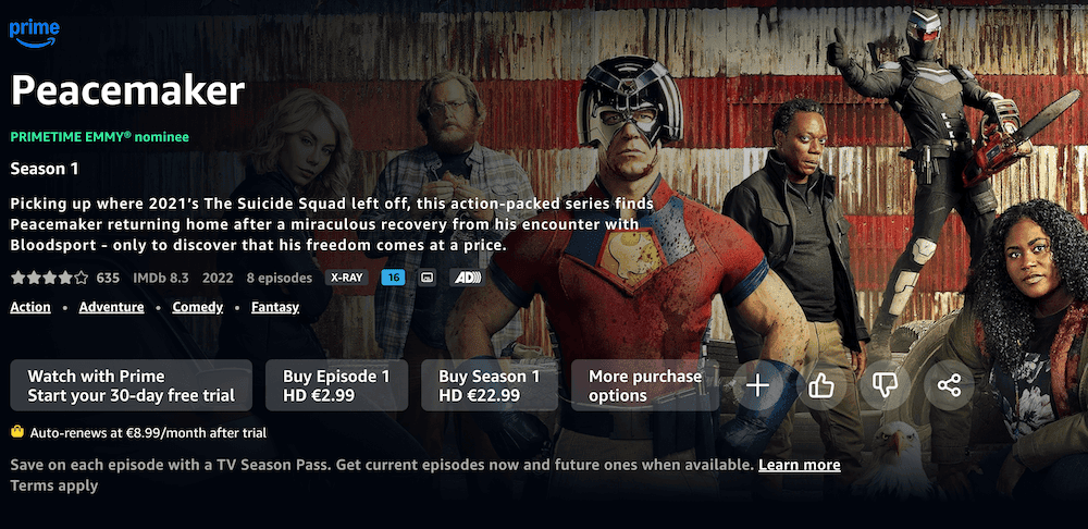 While there’s no specific free streaming option for ‘Peacemaker,’ Amazon Prime Video in Austria and Germany provides a free streaming option if you make use of Prime’s free trial. That said, we’re not sure when the second season will premiere there, so you’ll need to be patient.